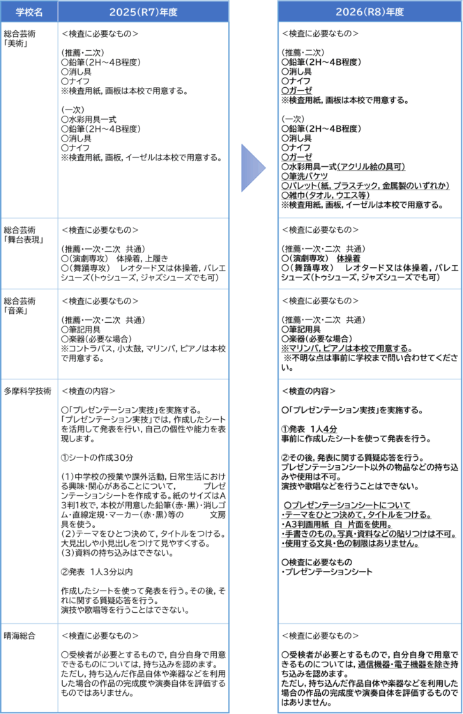 8.実技検査の変更(文化・スポーツ等特別推薦除く)