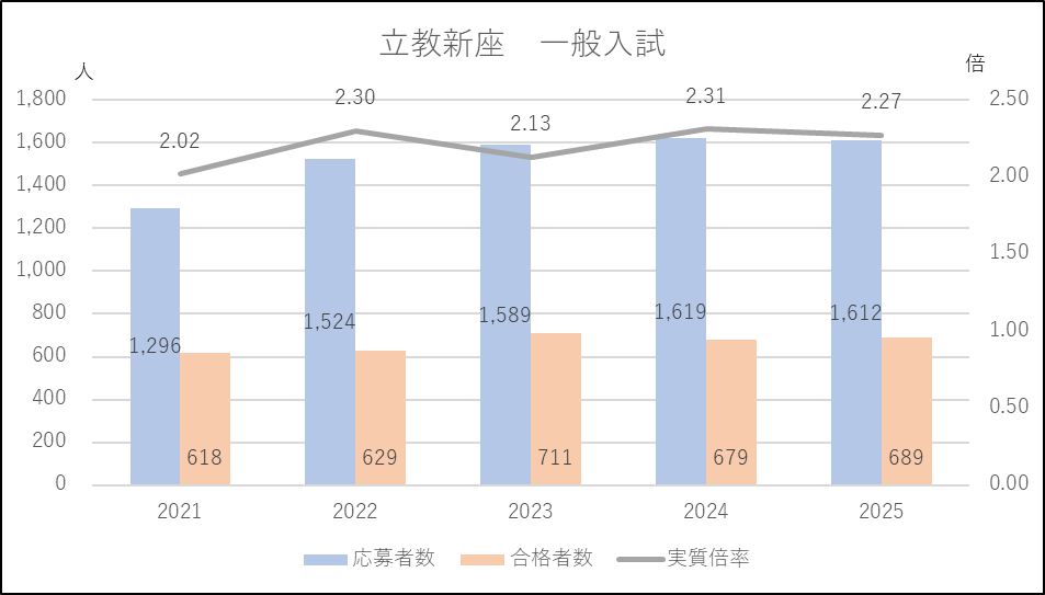 立教新座は一般入試日が2/1であることから,1/22から始まる大宮開成や栄東,2/7の慶應義塾志木,2/9の早稲田大学本庄などいろんな併願パターンが可能で,志望の順位もさまざまな多くの受験者が集まります。