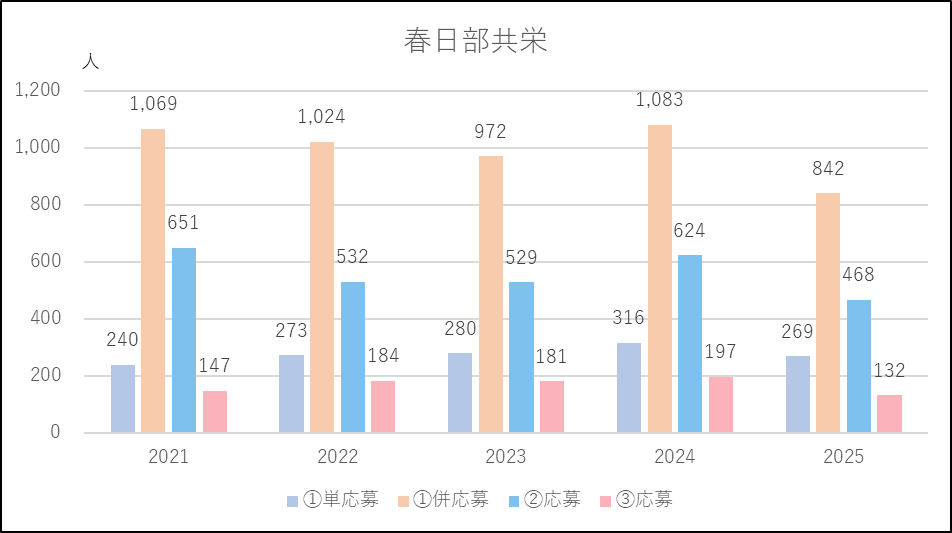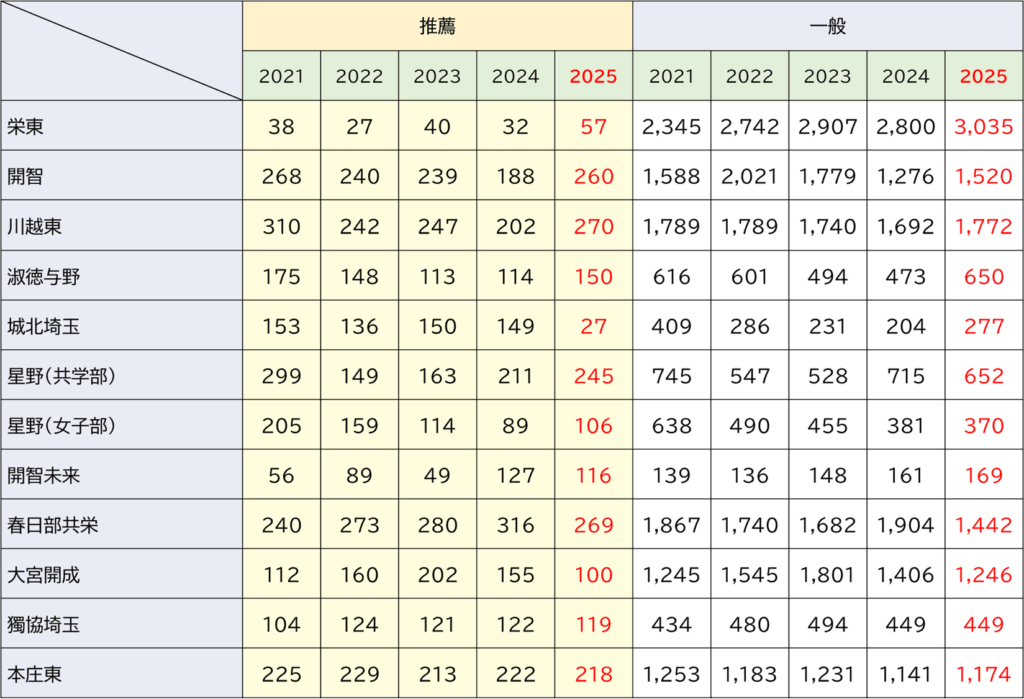 ※春日部共栄は単願入試に1回単の人数を,併願入試に1回併,2回,3回を合計した人数を掲載しています。