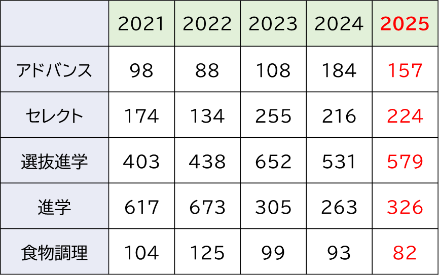 2023年度,2024年度と不合格者が多く出ていましたが,2025年度は減少し2022年度並みに落ち着いたのも特徴のひとつといえるでしょう。