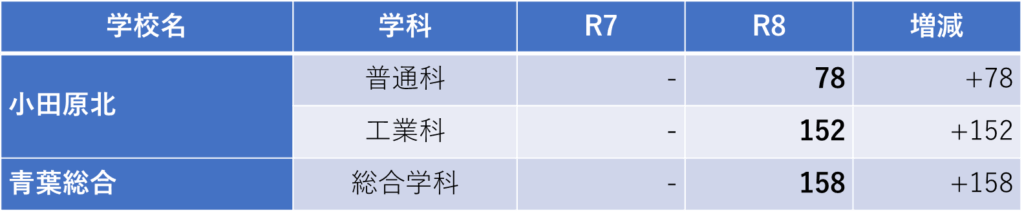 以下は募集学級数が変わり定員の増減があった学校の一覧です。