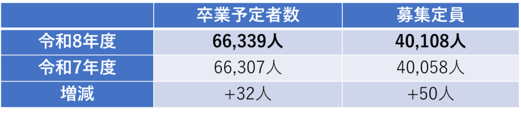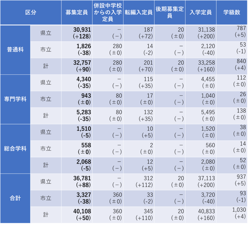 2026(R8)年3月の県内公立中学校卒業予定者数は前年度同期とほとんど変わらないことから,公立高校の募集定員も前年度並みの40,108人になりました。しかし,新設校が2校誕生するほか募集学級の増減は前年度より多くなっています。どのような学校が誕生し,どのような学校で募集数が増減するのかまとめましたのでご参考ください。