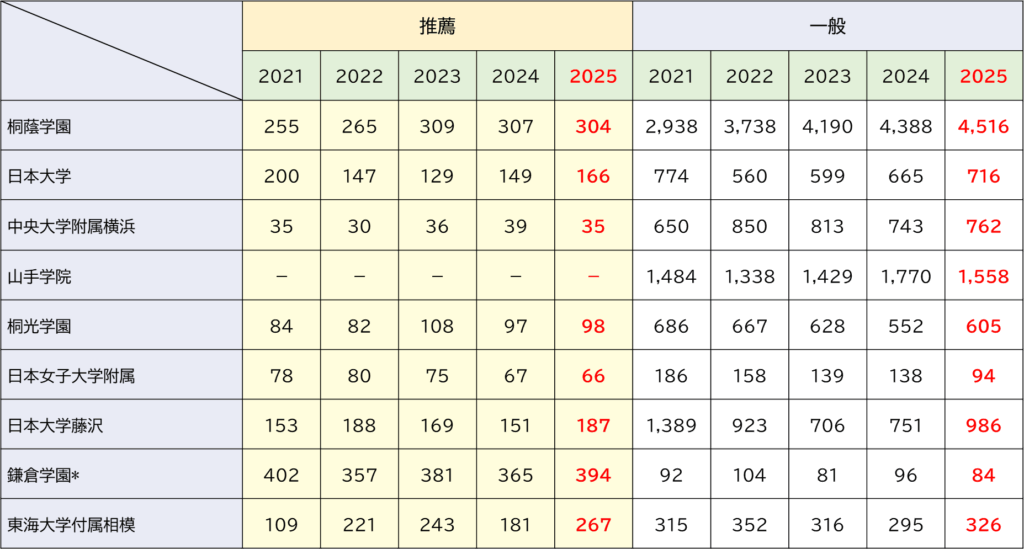 *鎌倉学園の推薦入試欄の応募者数は一般A(書類選考)のものです。