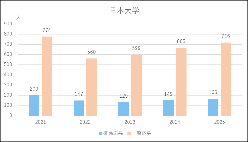 日本大学は 2024年度に推薦・一般ともに出願基準が緩和され,応募者数が増加。今年度も募集要項に大きな変更がなかったため,前年度に続いて多くの受験生が集まりました。