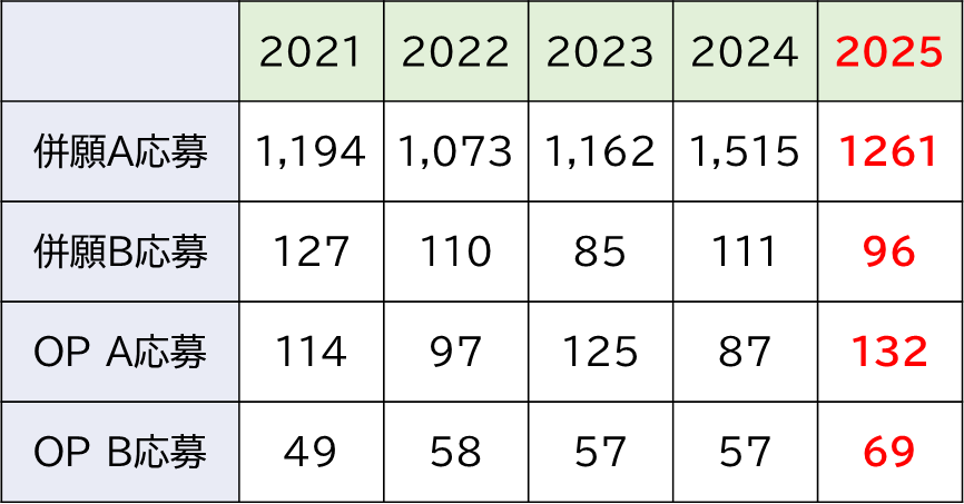 また,OP B(2/12)方式も応募者数が増加し,こちらも過去5年間で最も多い応募者数を記録しました。