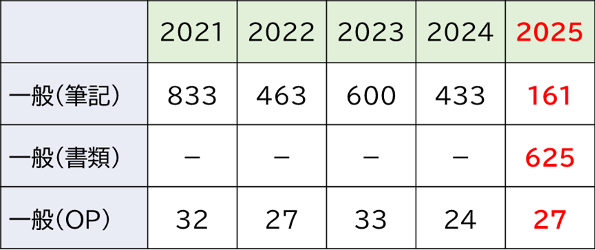このため2026年度はやや敬遠され応募減になる可能性がありますが,募集要項に大きな変更がないため高い人気は維持するものと見込まれます。