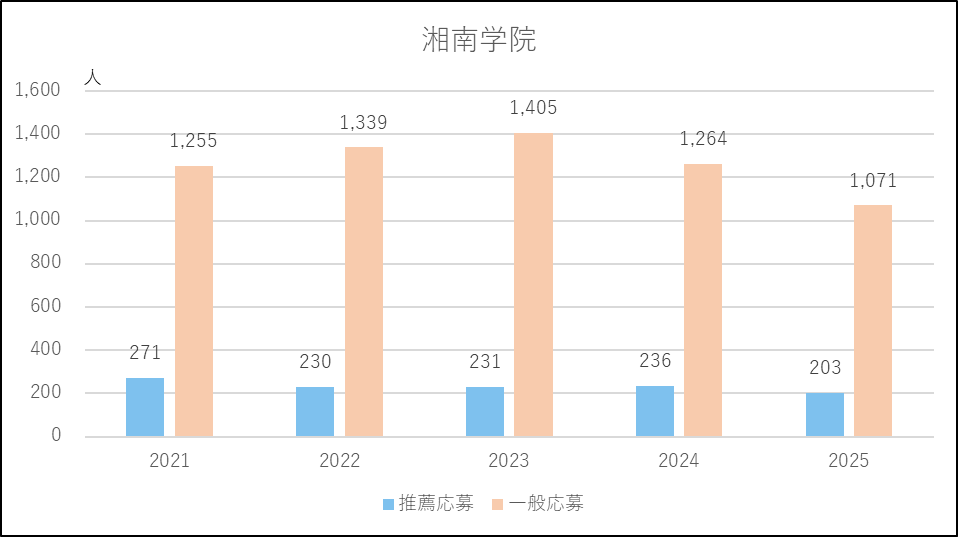 2023年度から2024年度にかけては大きな変更はなく,応募者が減少傾向にある湘南学院から受験生が流れてきているとみられます。