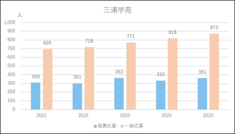 三浦学苑は,応募者数が緩やかな増加傾向にある学校です。