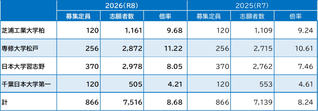 令和8年度千葉県私立高等学校に係る志願状況等の詳細については下記ページをご確認ください。