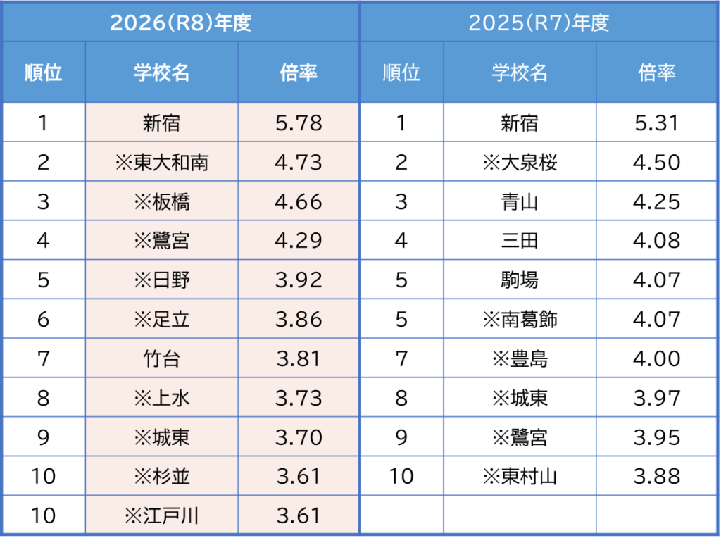 普通科・専門学科の高倍率校ランキングと倍率推移