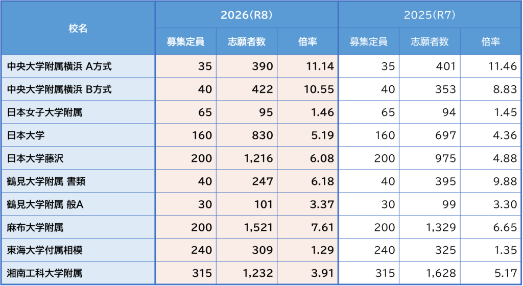 2月5日に神奈川県私立高等学校の入学者選抜試験志願状況が発表されました。概要は以下の通りです。